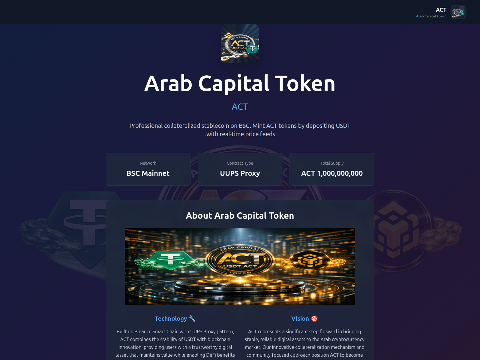 The site displays a page titled “Arab Capital Token (ACT) - Web3 Platform”.
