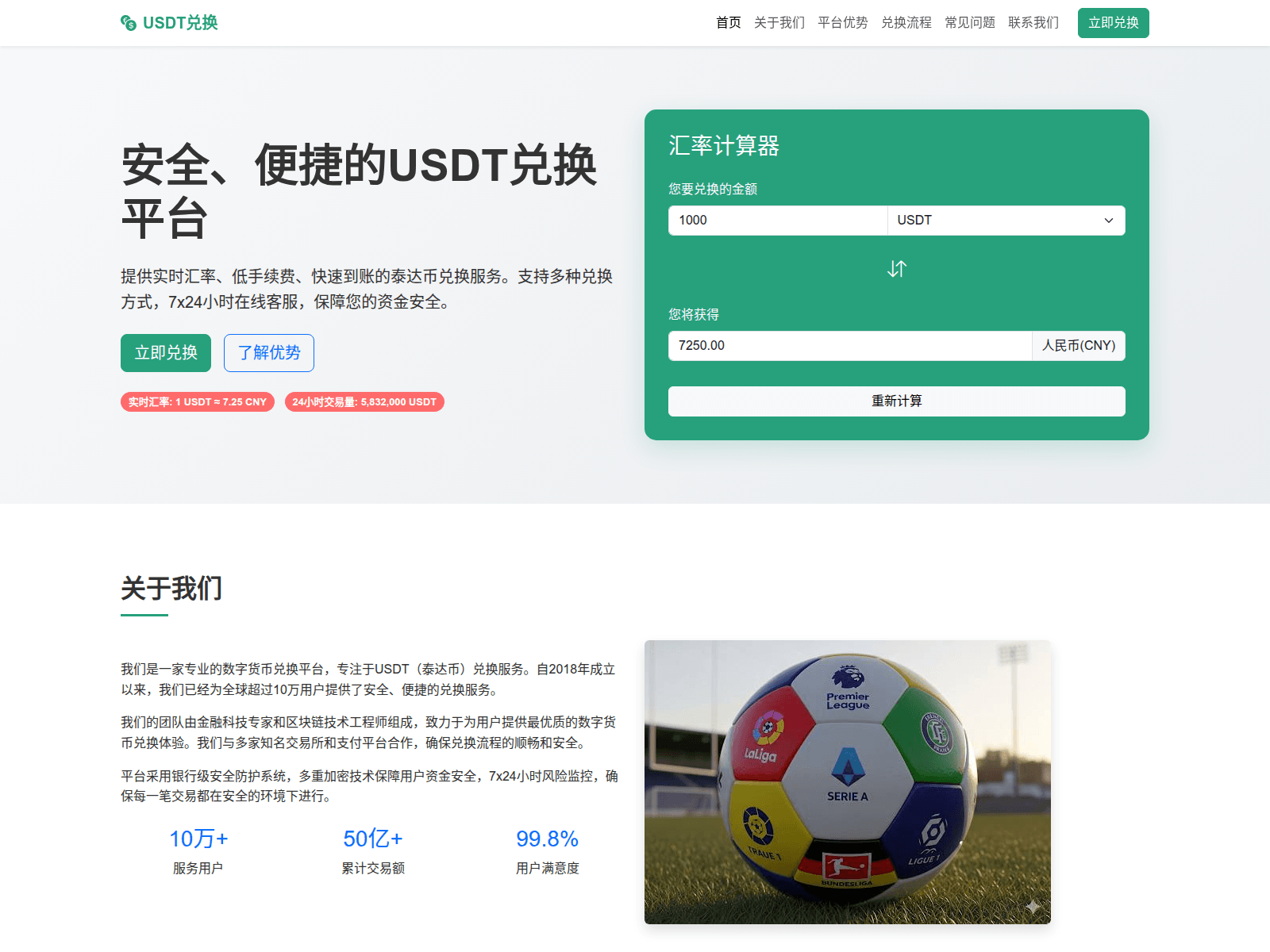 The site displays a page titled “USDTå æ¢ - å®å ¨ä¾¿æ·çæ³°è¾¾å¸å æ¢å¹³å° | 宿¶æ±ç | 使ç»è´¹”.