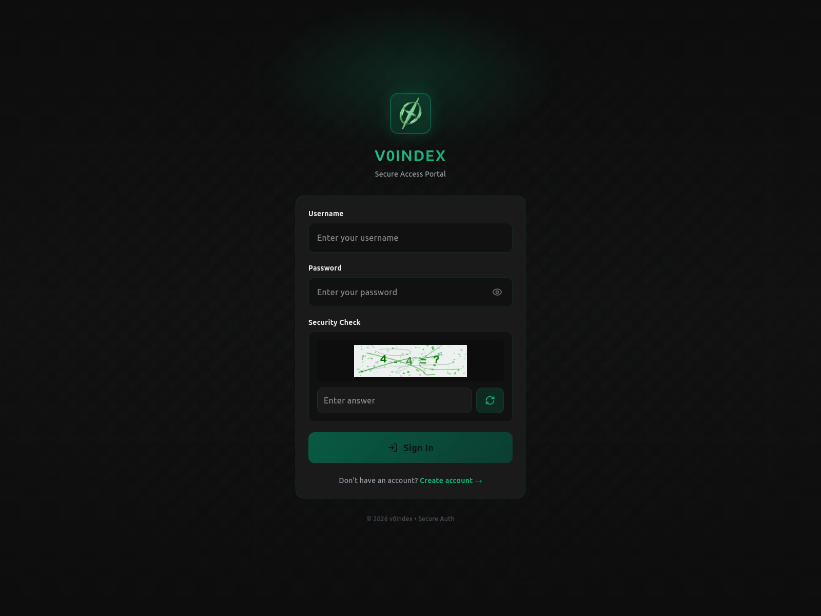 The site displays a page titled “Sign In - v0index”.