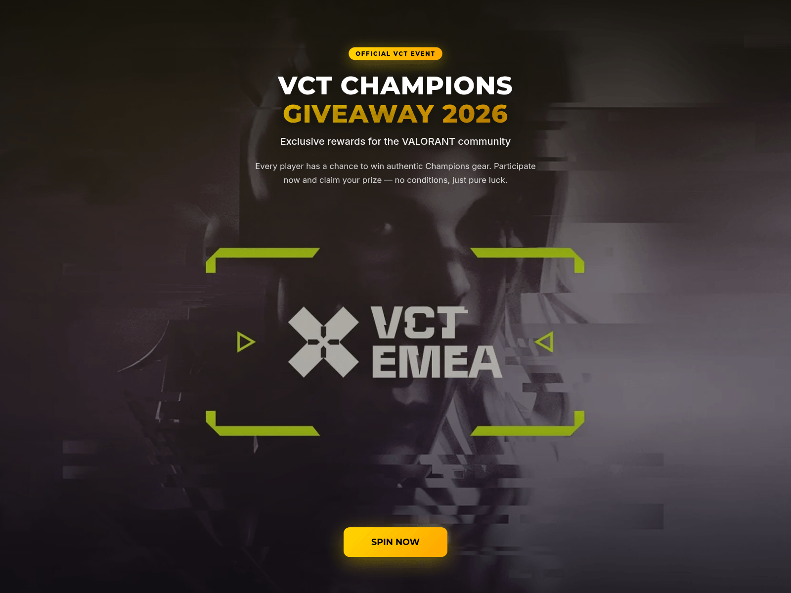 The site displays a page titled “VALORANT VCT Champions Giveaway”.