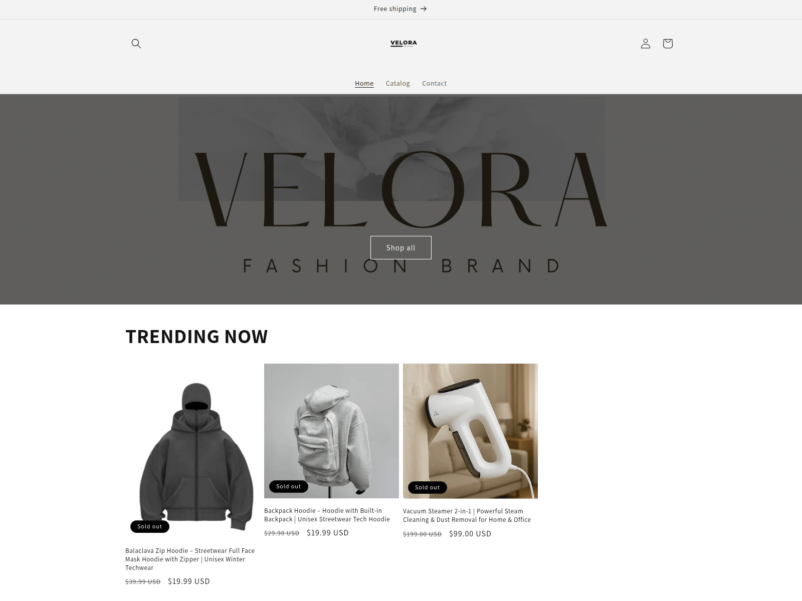 The site displays a page titled “VELORA”.