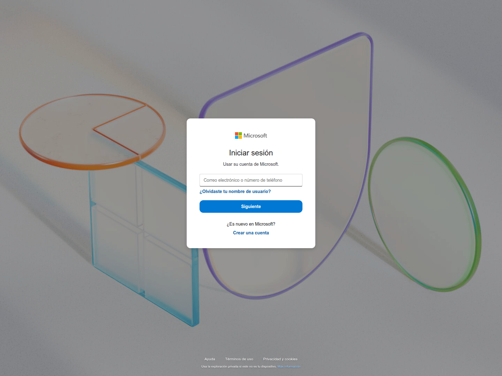 The site displays a page titled “Iniciar sesión en tu cuenta Microsoft”.