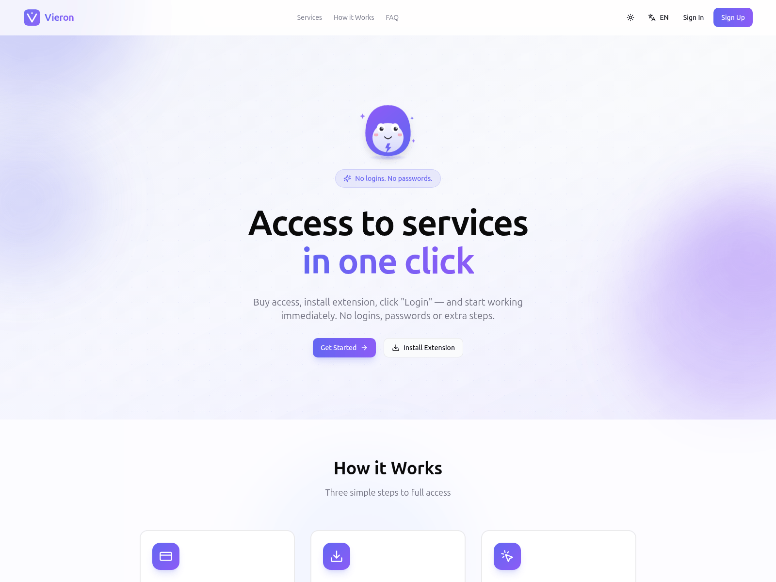 The site displays a page titled “Vieron — AI subscriptions in one click”.
