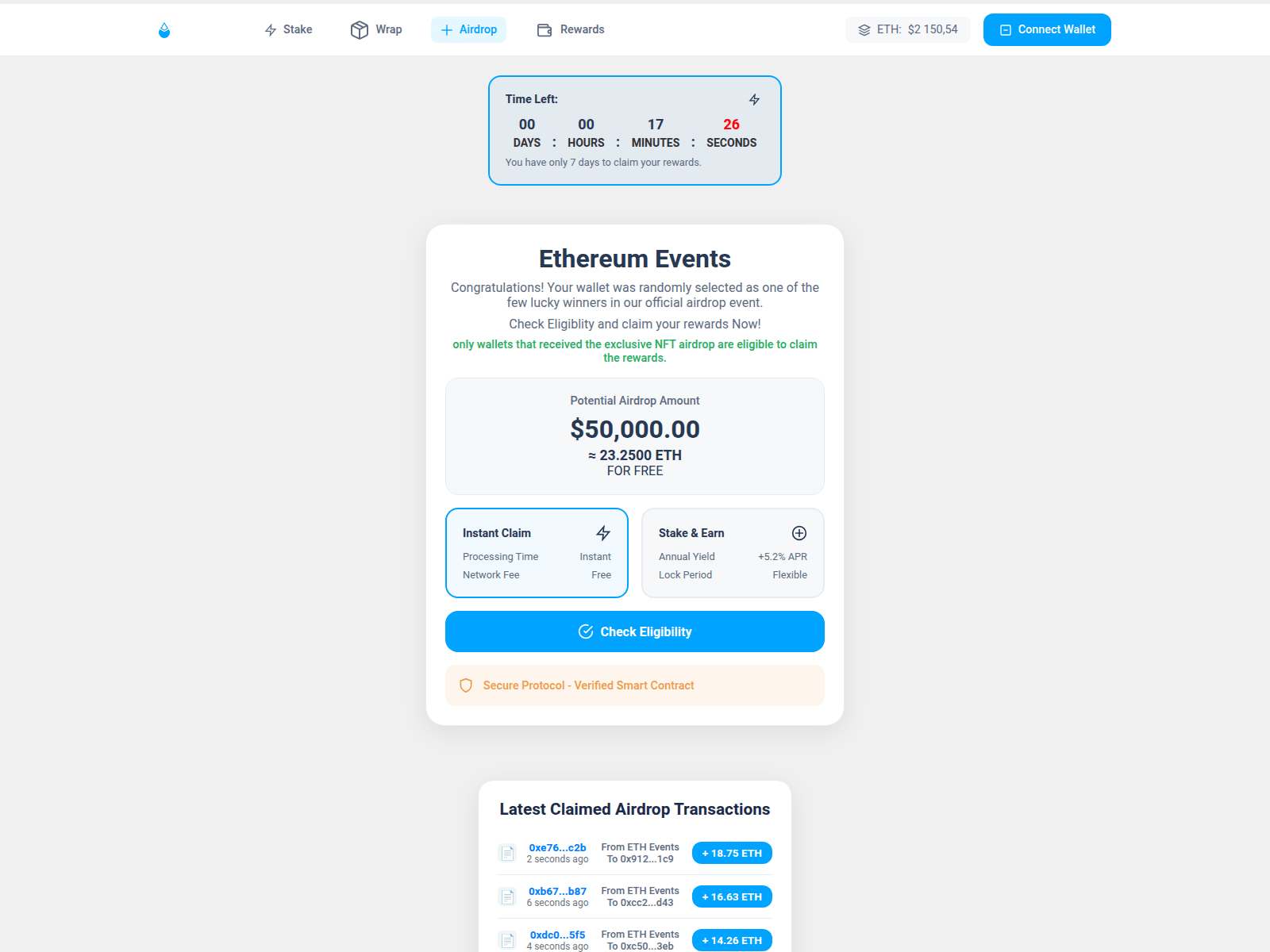 The site displays a page titled “Ethereum Events”, which may be designed to impersonate Ethereum.