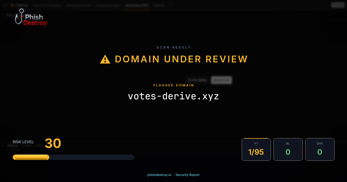 votes-derive.xyz has been flagged by 1 security vendor as of March 16, 2026.