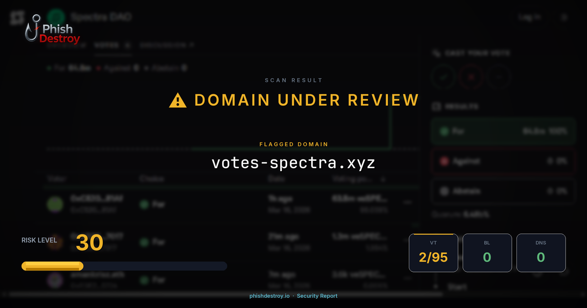 votes-spectra.xyz has been flagged by 2 security vendors as of March 16, 2026.