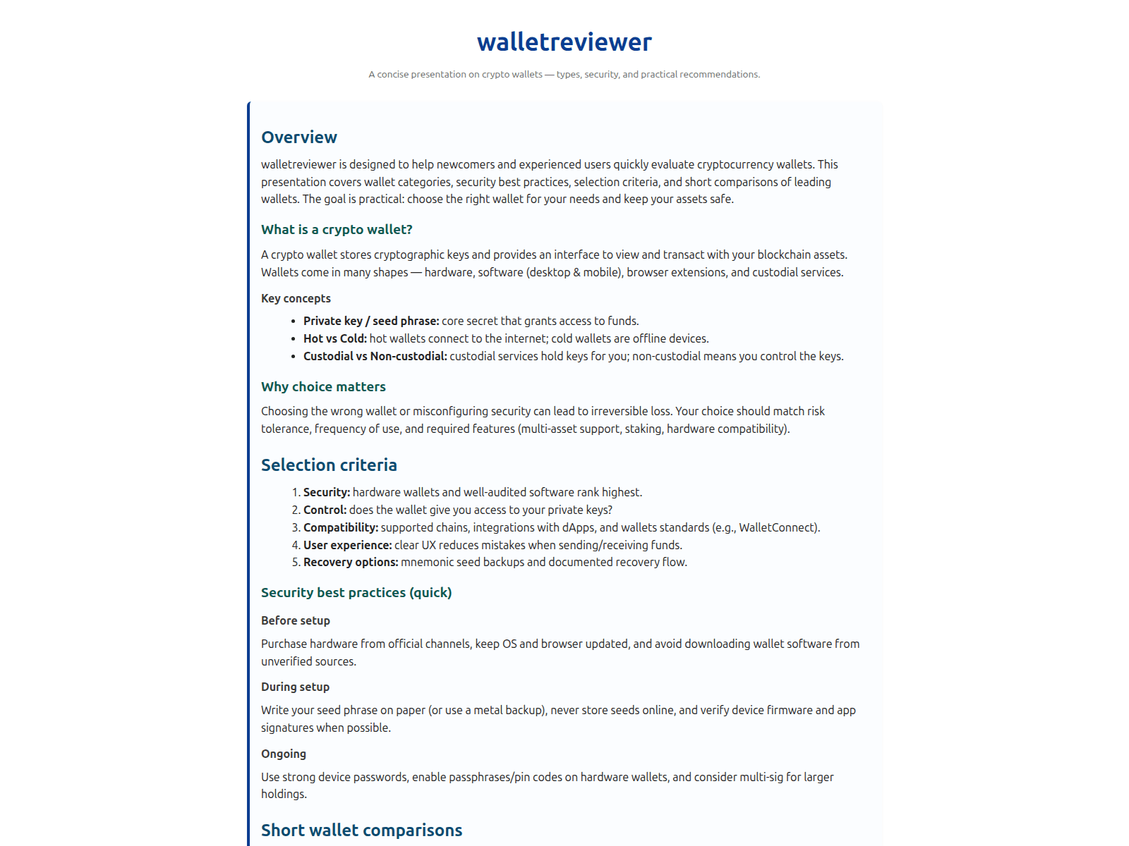 Domain Security & Threat Intelligence Report“walletreviewer — Presentation”