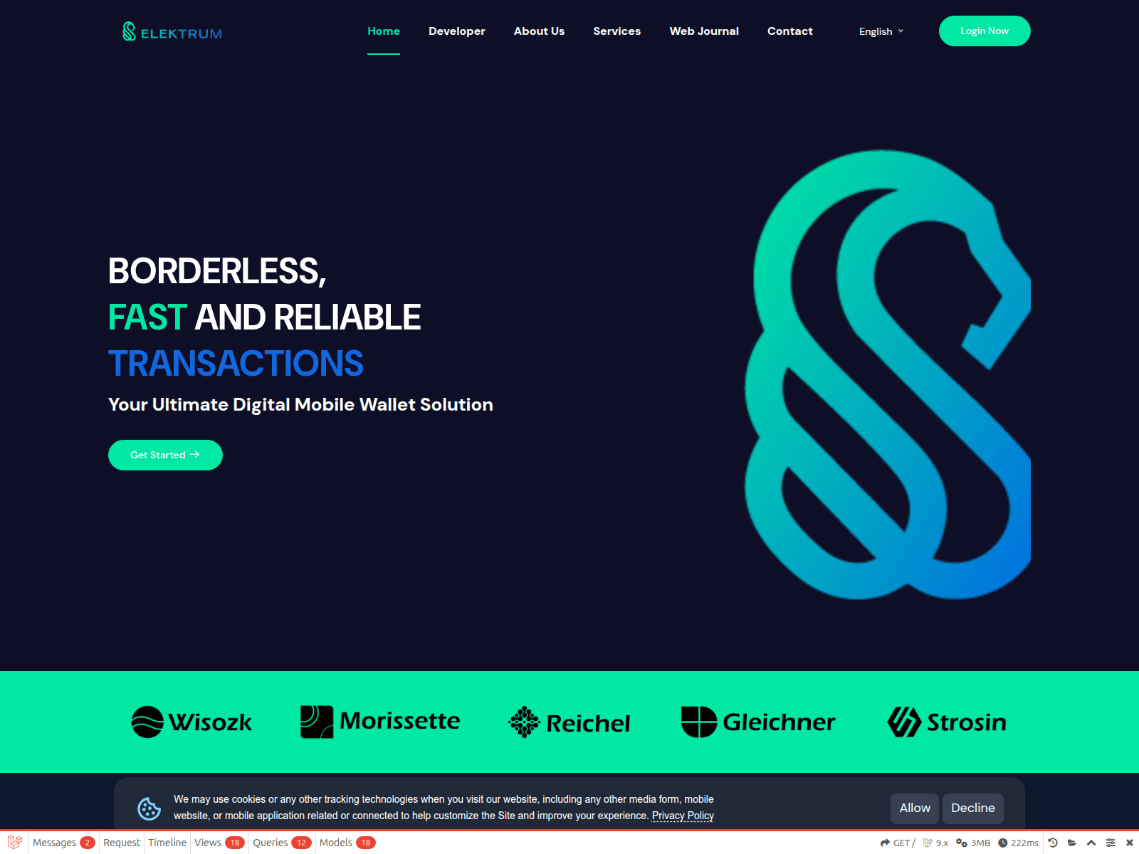 The site displays a page titled “Elektrum | Your Ultimate Digital Mobile Wallet Solution”.