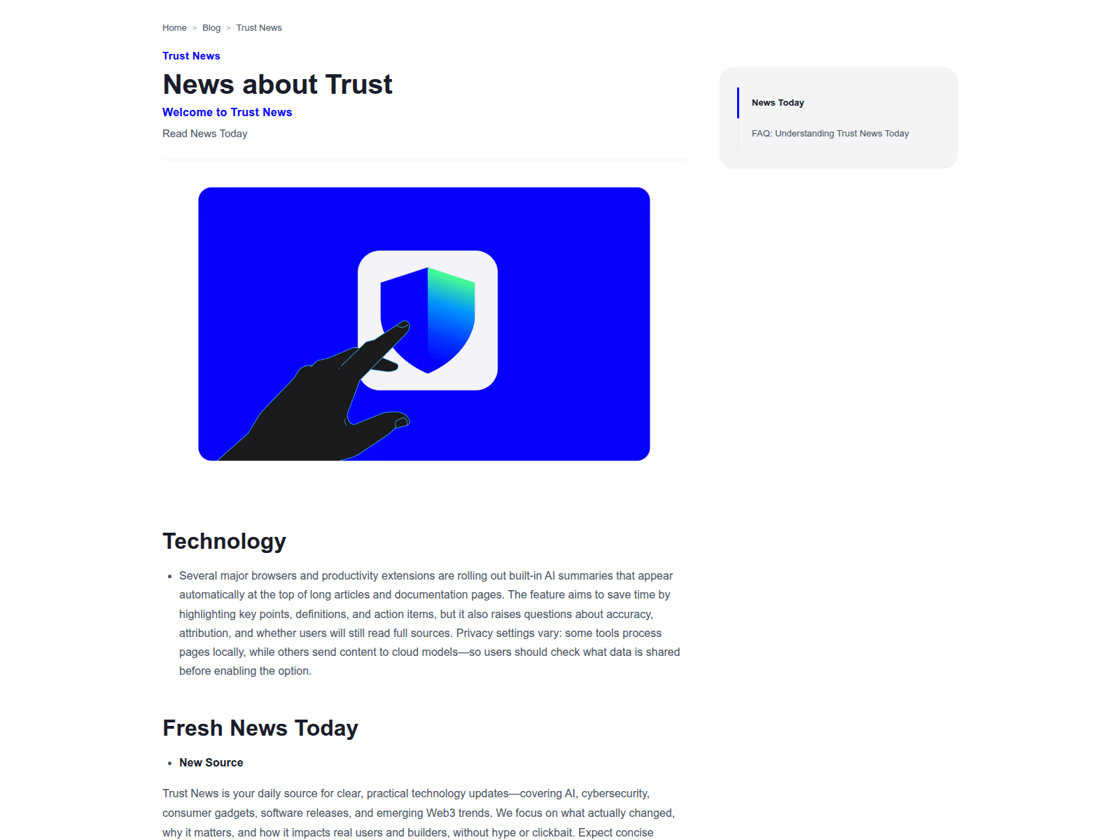 The site displays a page titled “Trust News”.