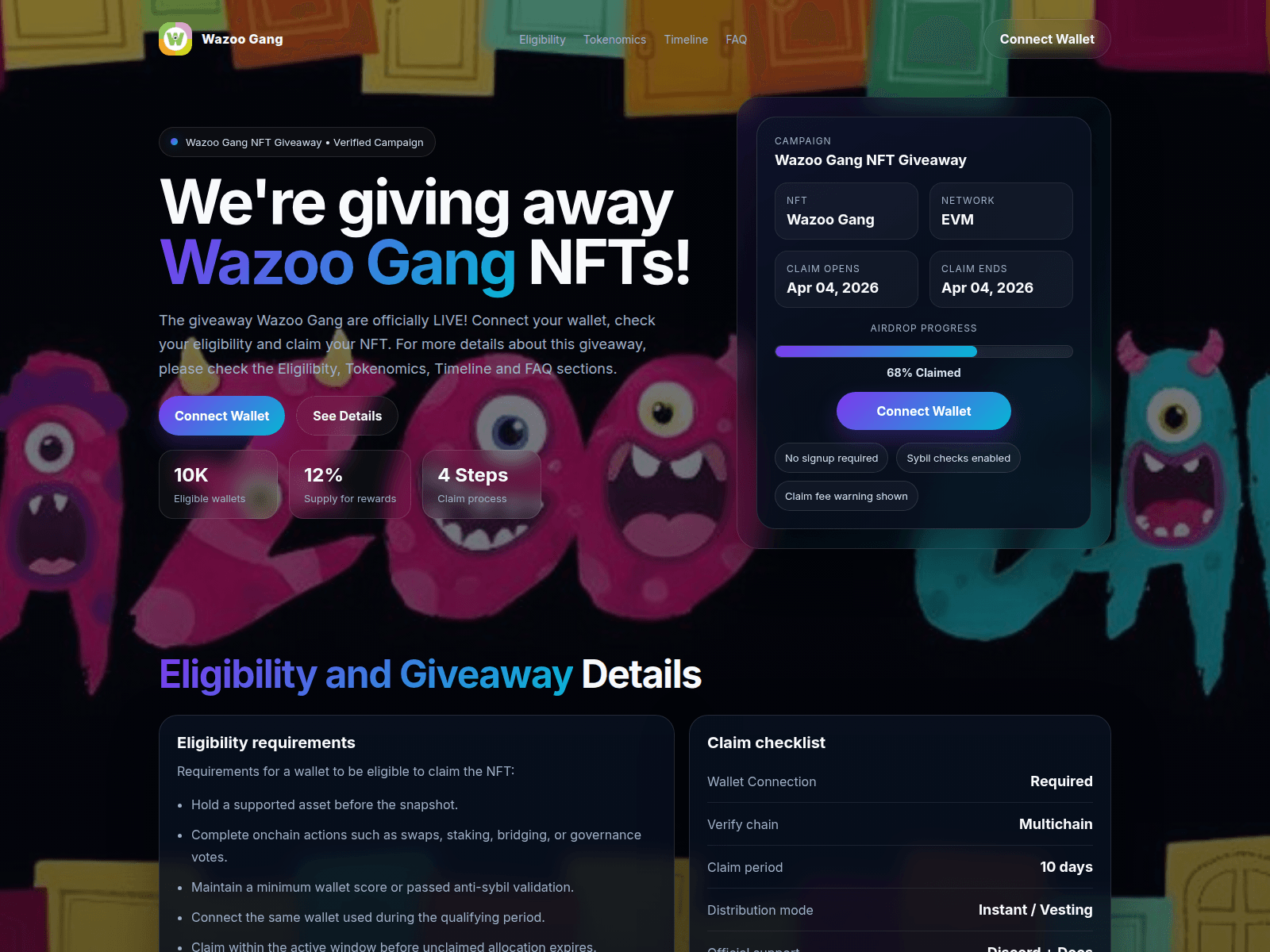 wazoogang[.]art was registered on April 04, 2026, through NICENIC INTERNATIONAL GROUP CO., LIMITED and resolves to IP address 188.114.97.3. The domain utilizes a Let’s Encrypt SSL certificate and has not been flagged by any of the 95 VirusTotal vendors as of the latest scan. No current blocklist entries or trust scores were detected, indicating early-stage deployment and low public awareness.