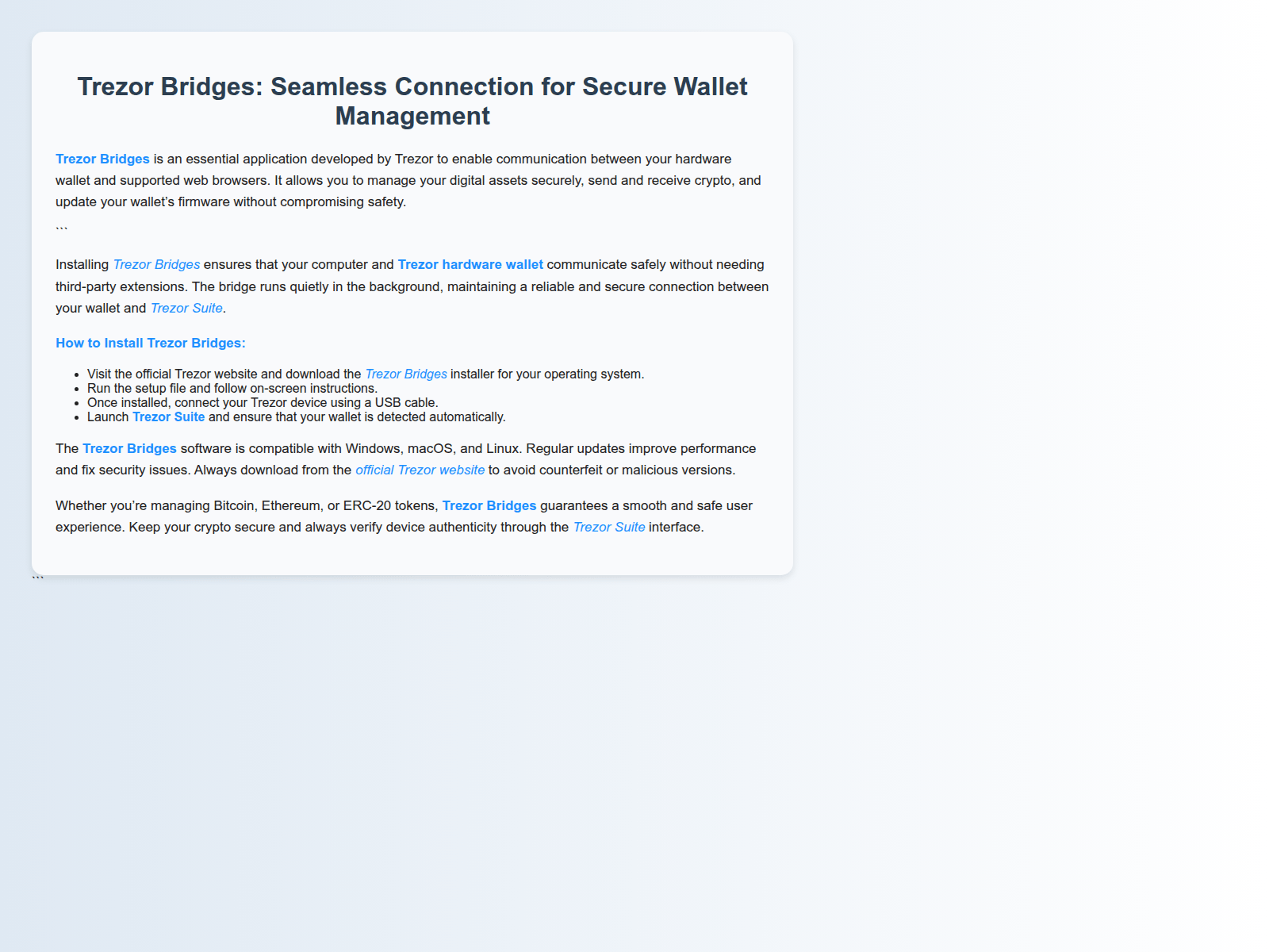 “Trezor Bridges | Connect Your Hardware Wallet Securely”