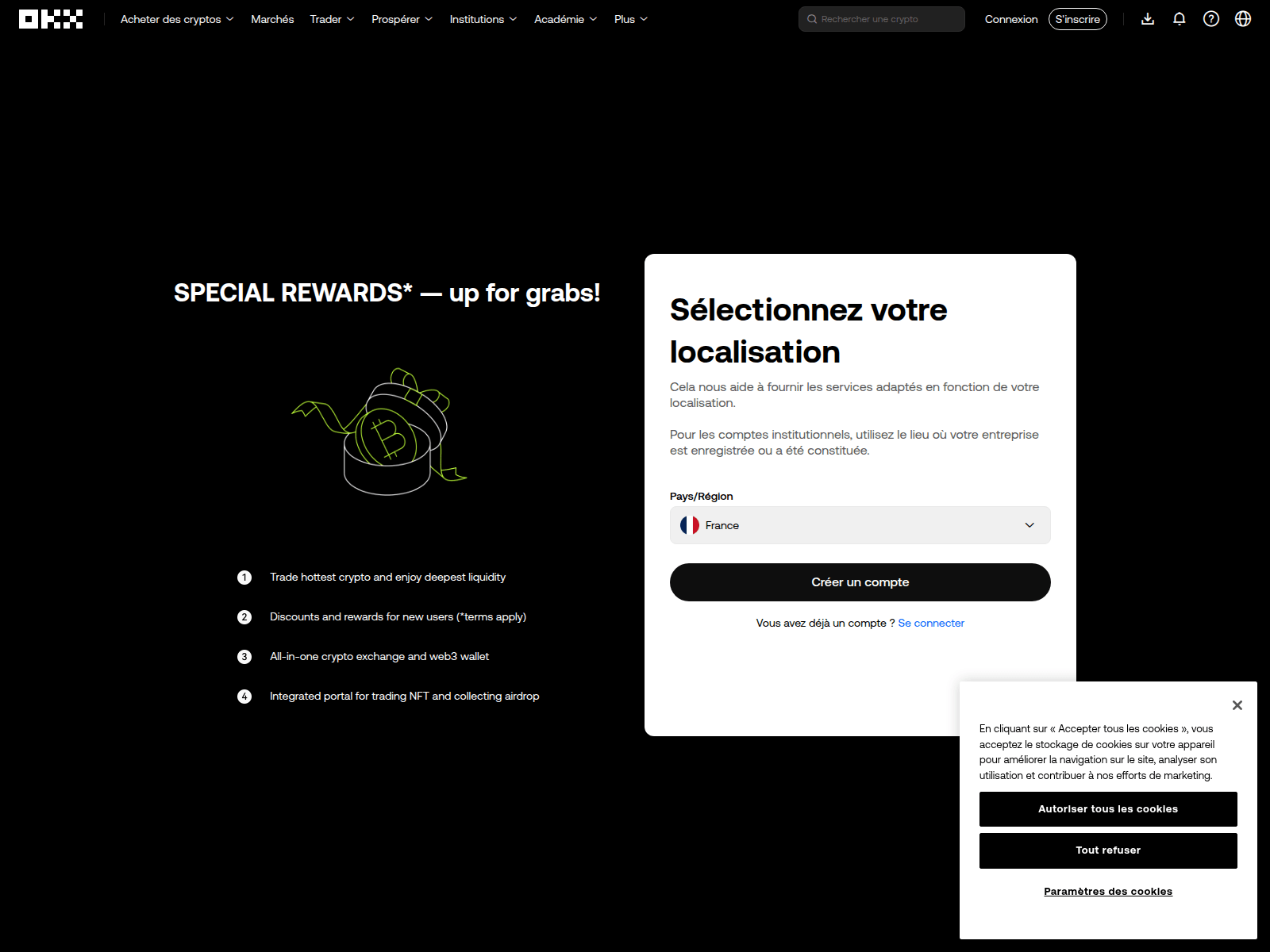 The site displays a page titled “Earn rewards when you get started on OKX | My referral code: 50530968 | OKX United States”, which may be designed to impersonate OKX.