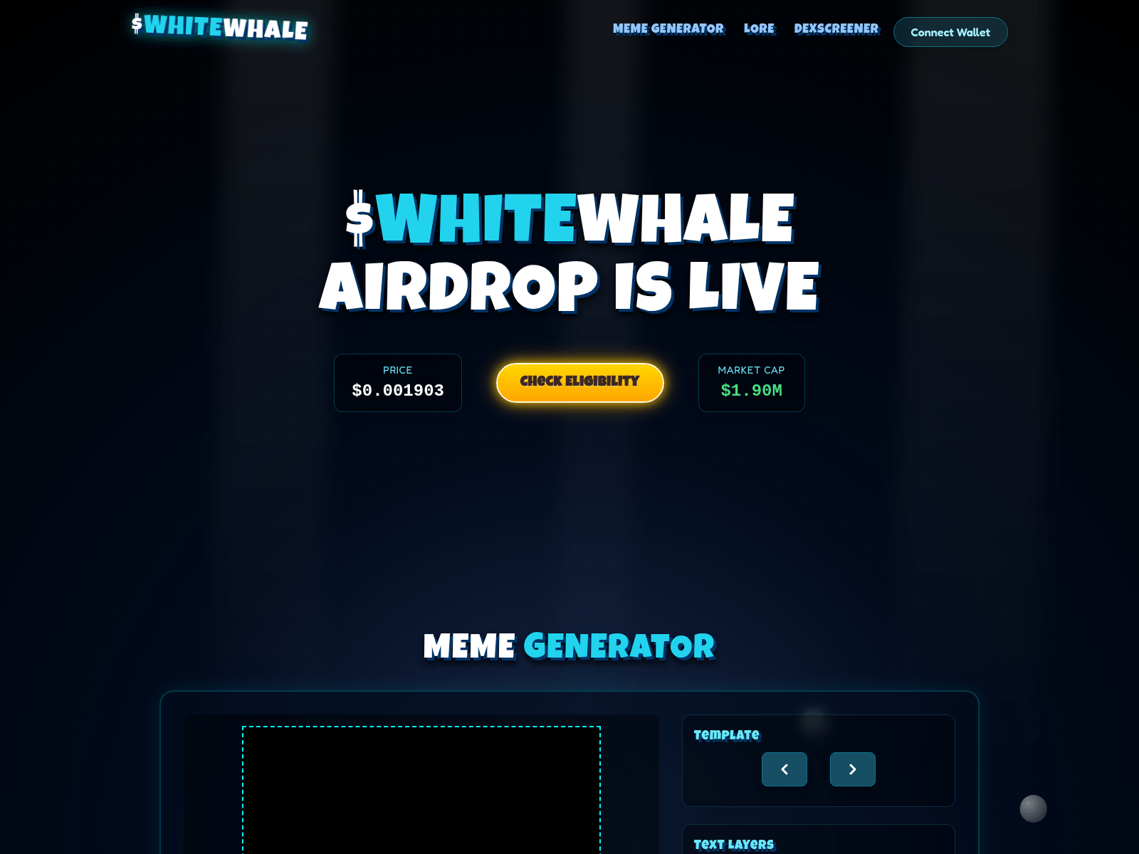 The site displays a page titled “$WHITEWHALE”, which may be designed to impersonate dexscreener.