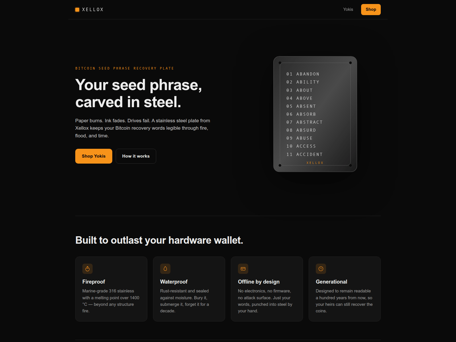 “Xellox — Bitcoin seed phrase recovery plates”