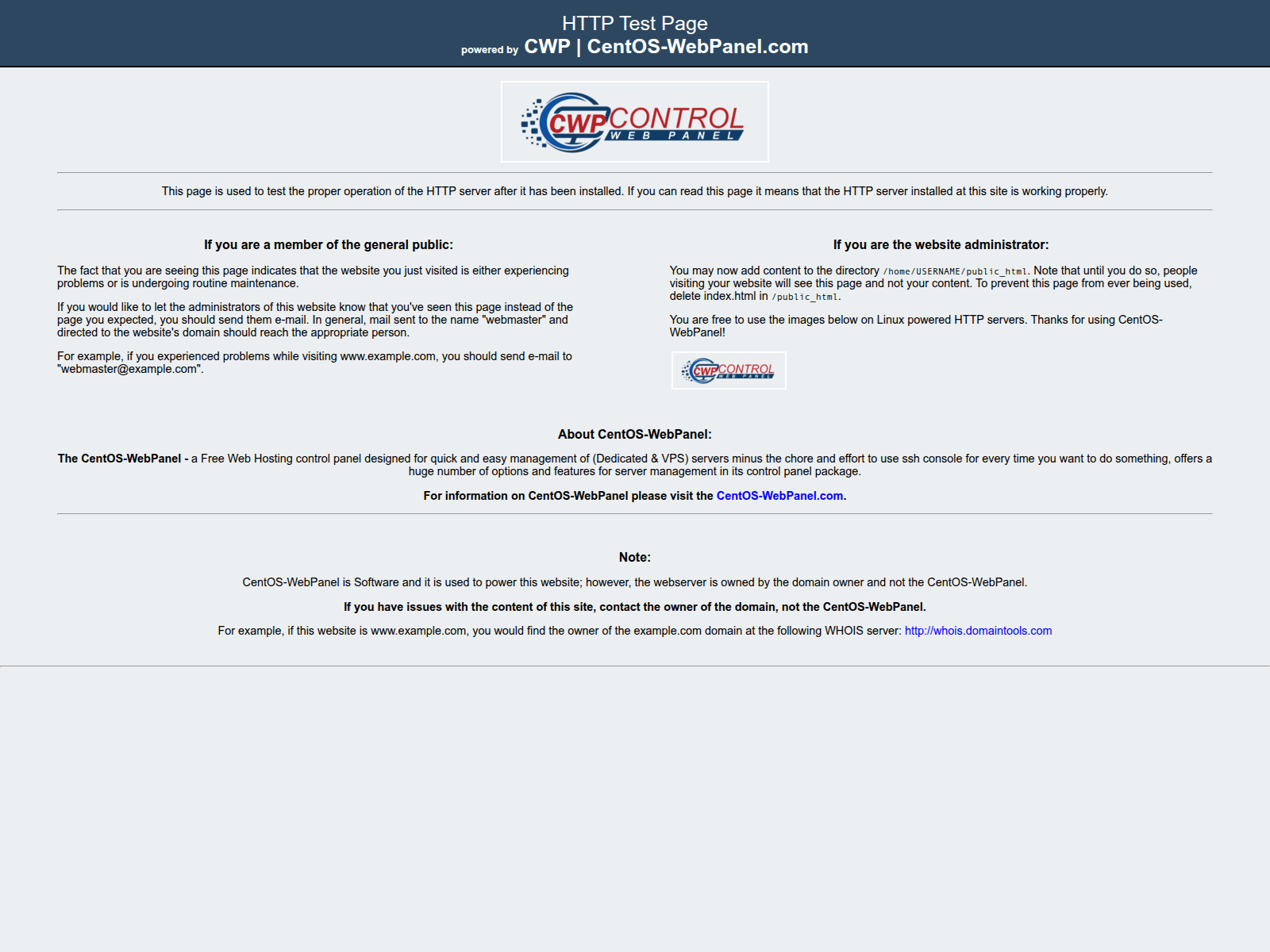 “HTTP Server Test Page powered by CentOS-WebPanel.com”