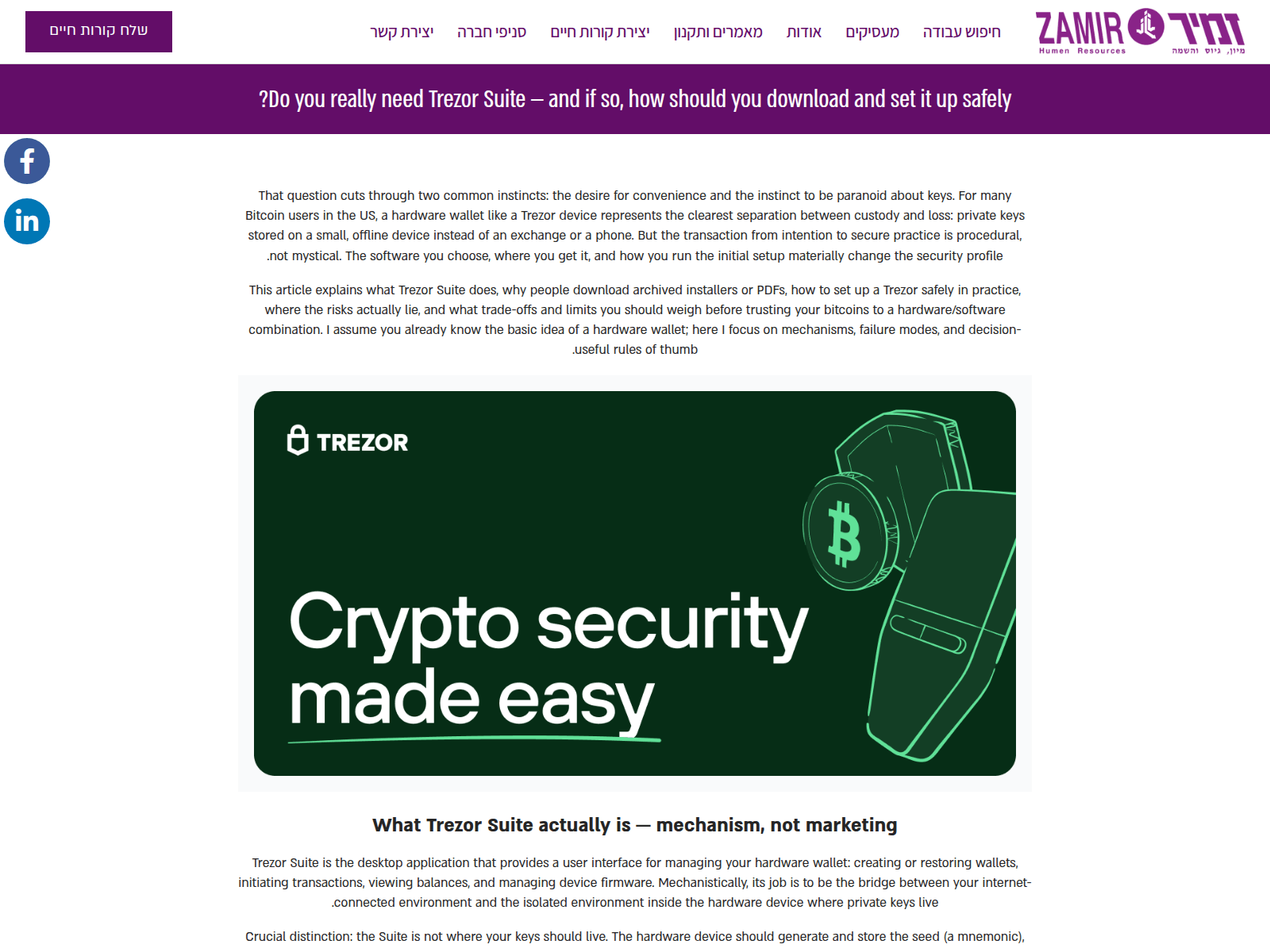 The domain www[.]zamir-jobs[.]co[.]il has been identified as a cryptocurrency phishing website. This malicious site targets Web3 users by mimicking legitimate crypto platforms to steal wallet credentials and digital assets.