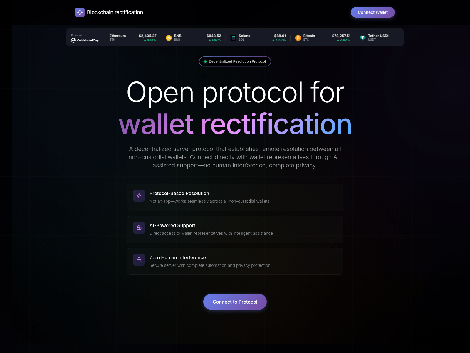 The site displays a page titled “Blockchain rectification”.